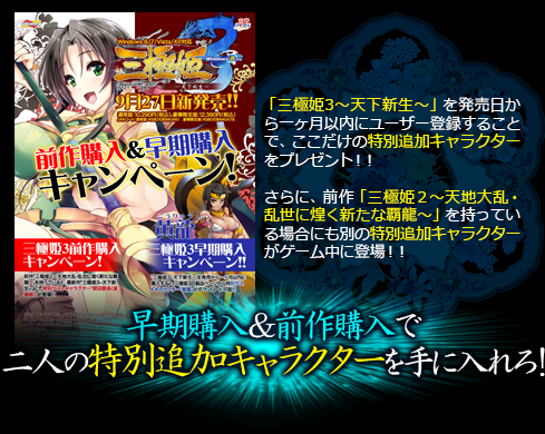 『三極姫3~天下新生~』のバナーを作成しました! より多くの人に知っていただくためにも、皆様のご協力をお願いします! お好きなバナーをお持ち帰りいただき、お手持ちのサイトにて設置してください。